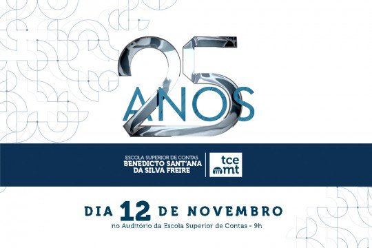 Em comemoração aos 25 anos da Escola Superior de Contas “Benedicto Sant’Ana da Silva Freire”, o Tribunal de Contas de Mato Grosso (TCE-MT) realiza, no próximo dia 12, às 9h, no Auditório Lenine de Campos Póvoas, uma solenidade especial marcada por reflexão, aprendizado e celebração da trajetória da instituição.